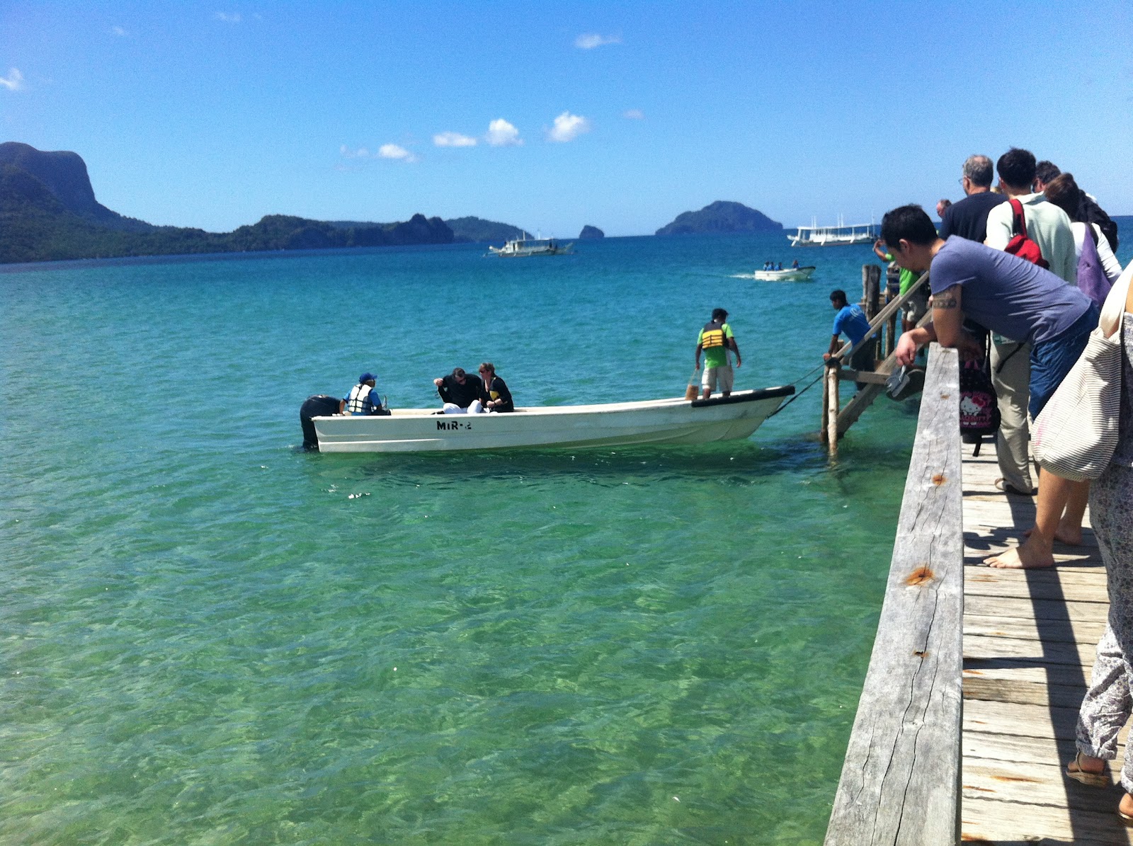 飛了差不多75分鐘抵達巴拉望的一個小島改轉船過去真正的Miniloc Island. 一下車就有牛車唱歌隊歡迎我們.