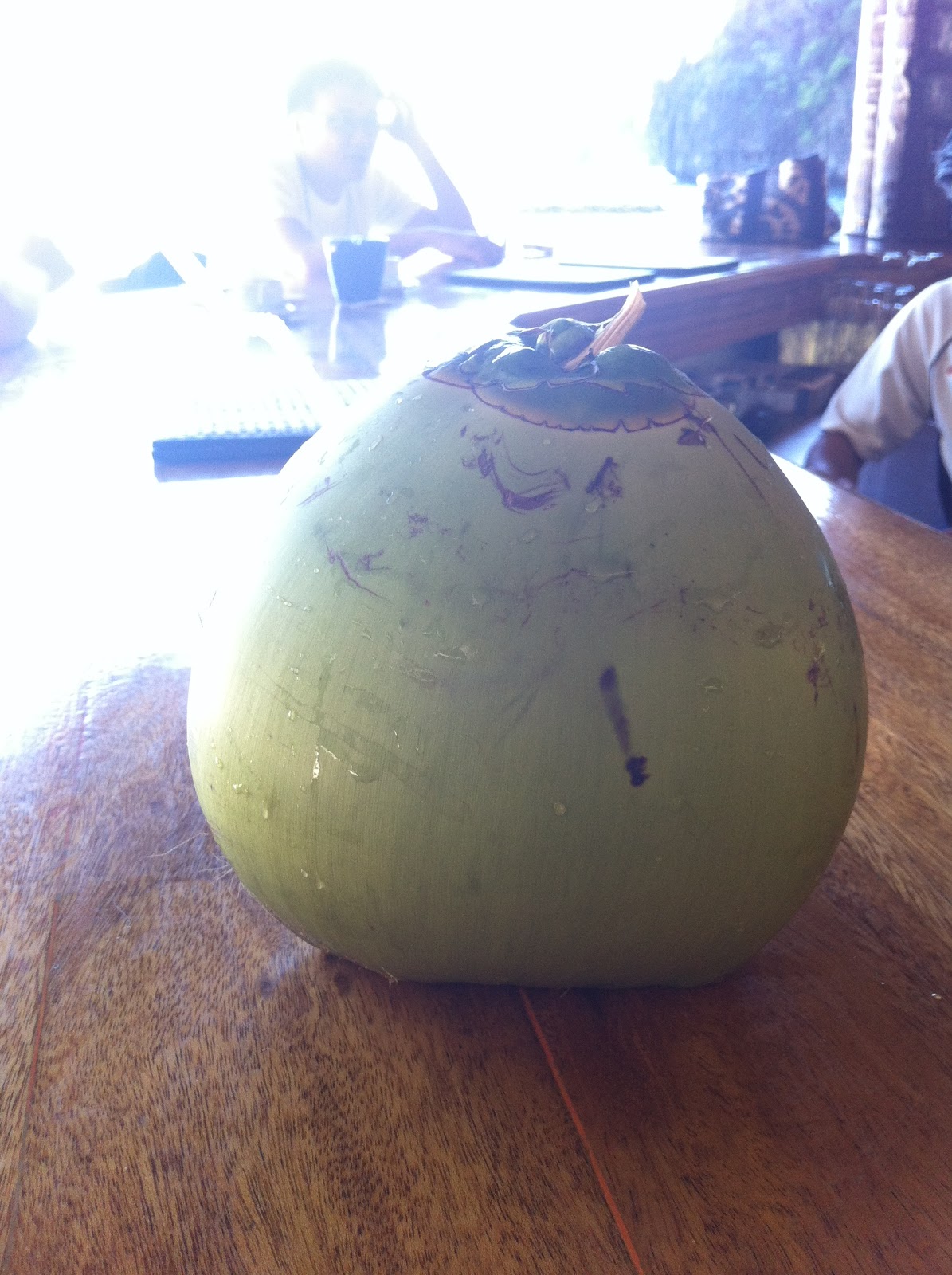 再來少不了要喝兩杯, 所以我們到了club house旁邊的Bar, 看到一堆椰子. 突發奇想, 請他調一個椰子的cocktail但必須要用coconut喝. 結果超級好喝. 如果大家有到那邊去的話記得叫他特調喔!