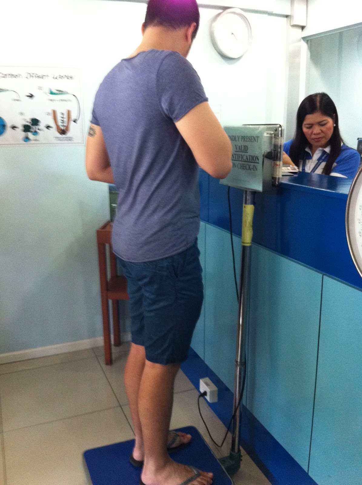每一個人, 也都必須要秤重. 好害羞~~~ 圖為可憐的被我拍照的友人~~~