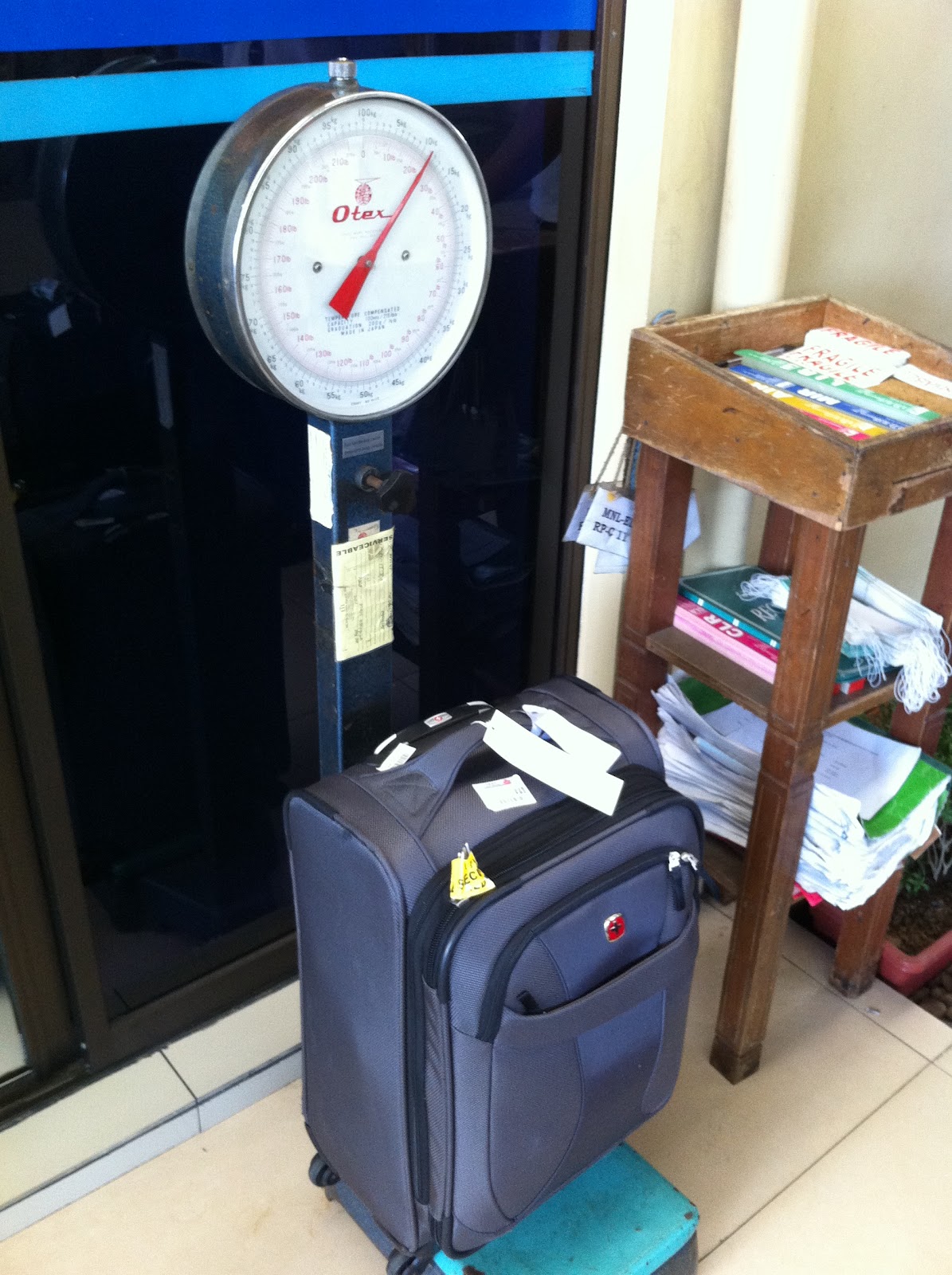值得一提的是每一件行李都必須要秤重. 每個人一件行李現重10kg!