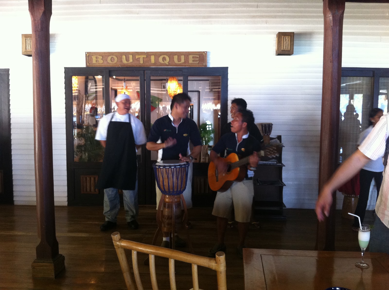 享受香濃椰子味的飲料完之後activity director就會帶你到club house. 這裡就是餐廳還有你未來這幾天會是活動的地方, 旁邊就是Bar. Happy Hour是4pm-6pm喔! San Miguel啤酒買一送一喔!